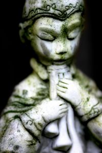 Unique garden statues can come in other mediums besides stone; like wood or alabastate plastic. Make sure you are mindful of the long term care of the ladder two though. Say for wood, whether to have a natural stain found in an oriental type garden. or wood settling naturally with the outside environment with moss.